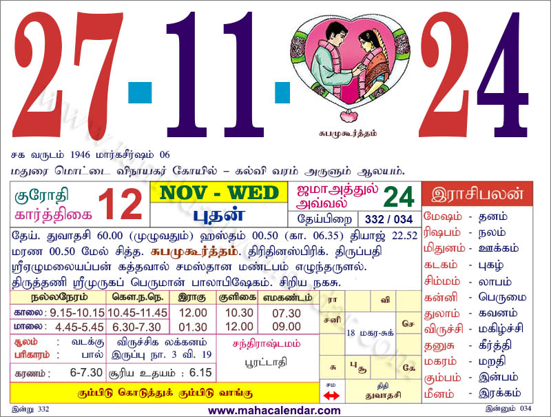 தமிழ் நாட்காட்டி 2024-11-27 புதன் கிழமை