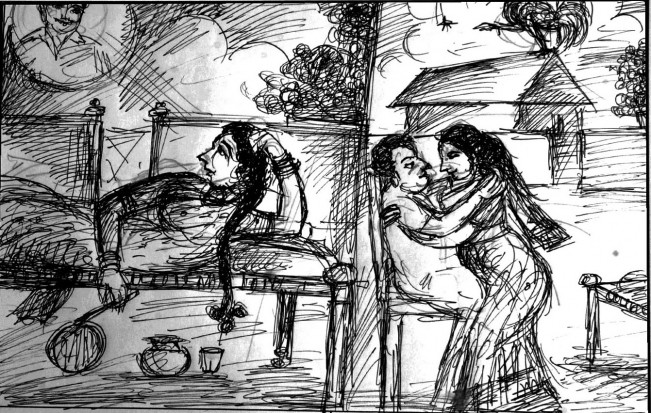 அவர் வராதபோது வரவை எதிர்பார்த்துத் தூங்குவதில்லை. வந்தபோதோ, எப்போது பிரிவாரோ என்று அஞ்சி் தூங்குவதில்லை; இரண்டு வழியிலும் என் கண்களுக்குத் தூங்க முடியாத துன்பந்தான்.