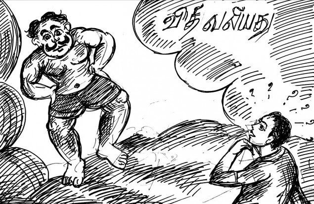 விதியை வெல்ல வேறொரு வழியை எண்ணி நாம் செயற்பட்டாலும், அந்த வழியிலேயோ வேறு ஒரு வழியிலேயோ அது நம்முன் வந்து நிற்கும்; ஆகவே விதியை விட வேறு எவை வலிமையானவை?.