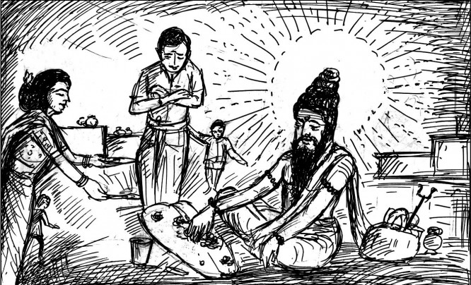 விருந்தினரைப் பேணுவதும் ஒரு யாகமே. அதைச் செய்வதால் வரும் நன்மை இவ்வளவு என்று அளவிட முடியாது; வரும் விருந்தினரின் தகுதி அளவுதான் நன்மையின் அளவாகும்.