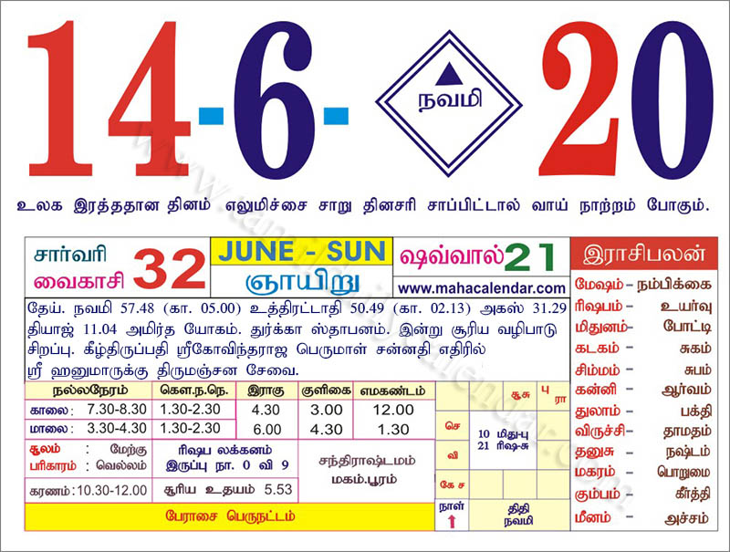 இன்றைய(2020.06.14) நாளுக்கான பஞ்சாங்கமும், இராசி பலன்களும்